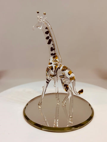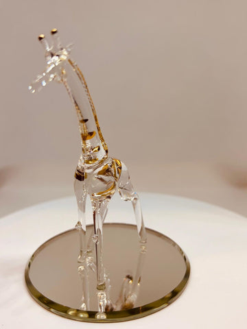 Glass Giraffe Figurine Handcrafted Gold Trimmed Animal Decor
