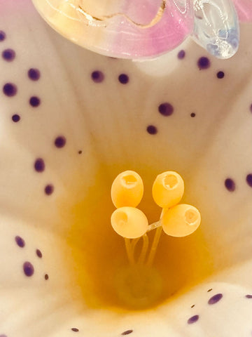 Butterfly on Lavender Lily Glass Figurine | Nature Display Décor