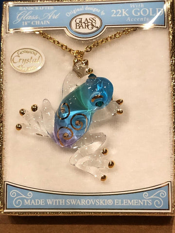 Blue Frog Necklace Handcrafted Glass Frog Pendant on 18" Gold Plated Chain