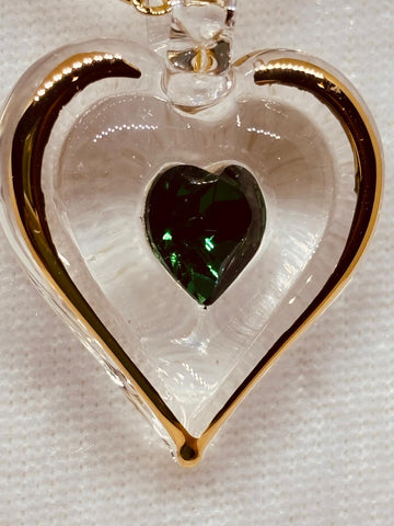 May Birthstone Heart Necklace | Green Crystal Birth Month Jewelry