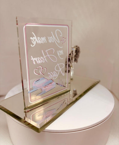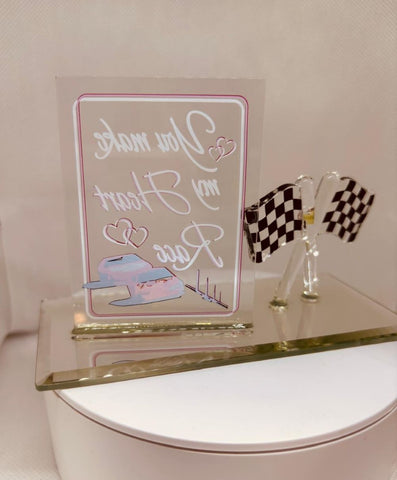 This unique glass piece captures the thrill of racing and the sweetness of love, making it a great display for Valentine's Day, anniversaries, or car-themed rooms.