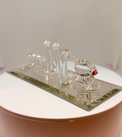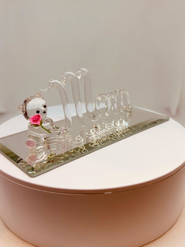 • Handcrafted glass bear figurine with flower and "Mom" sign