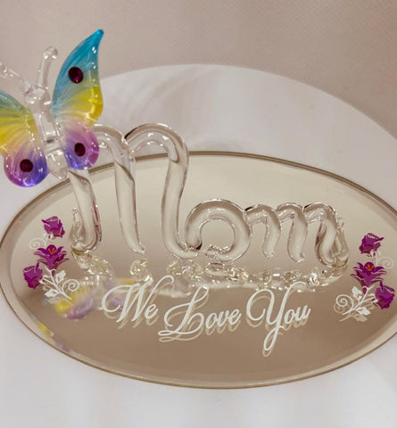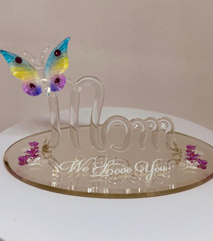 Celebrate your love for Mom with this beautiful handcrafted glass figurine featuring a rainbow-colored butterfly perched on a 3D "Mom." A heartfelt keepsake she'll treasure for years to come.