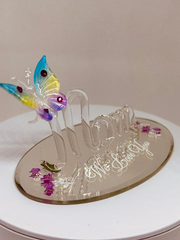 I Love You Mom Figurine | Handcrafted Glass Butterfly Decor | Mother’s Day Gift