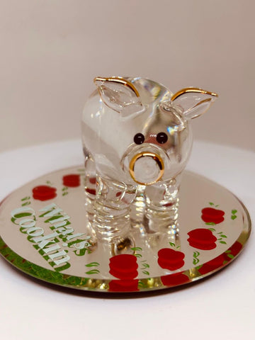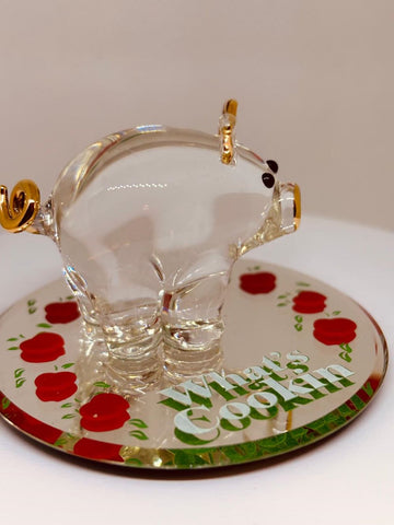 Pig “What’s Cookin” Figurine Handcrafted Glass Farm Pig Decor