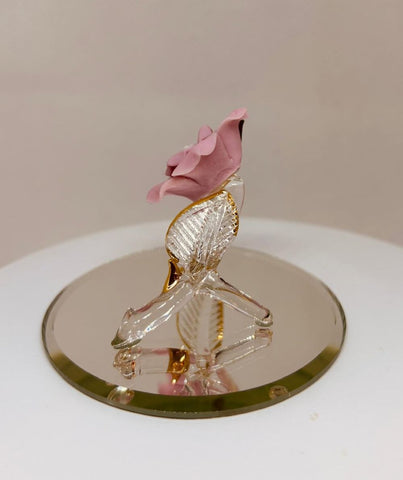 Pink Rose Glass Figurine | Handcrafted 22Kt Gold Trimmed Glass Rose Gift for Her