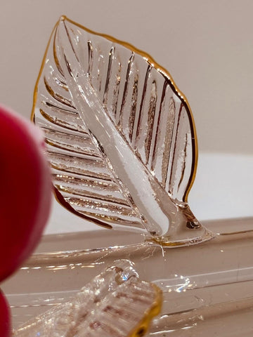 • Handcrafted porcelain red rose with 22Kt gold accents