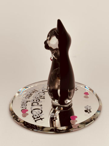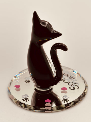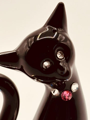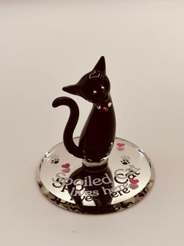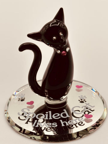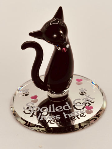 Spoiled Cat Glass Figurine | Handcrafted Black Cat Decor with Crystal Accents