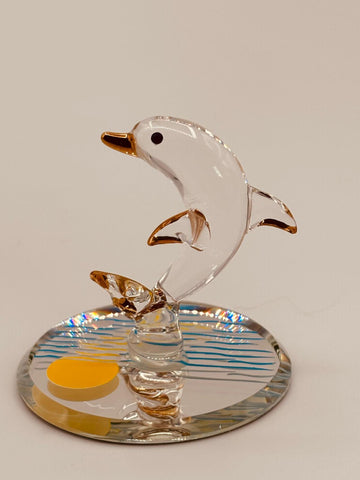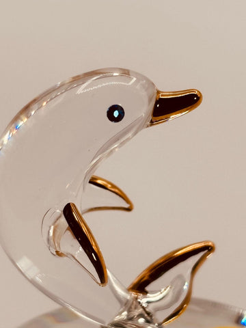 Sunset Dolphin Glass Figurine | Handcrafted Ocean Decor with Crystal and Gold Accents