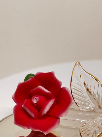 Sweetheart Bear Figurine | Handcrafted Glass Bear with Red Heart and Rose | I Love You Gift