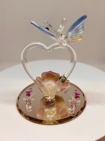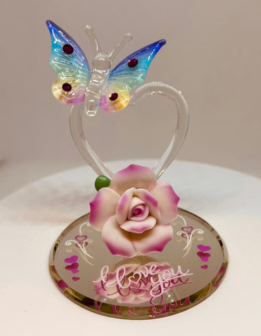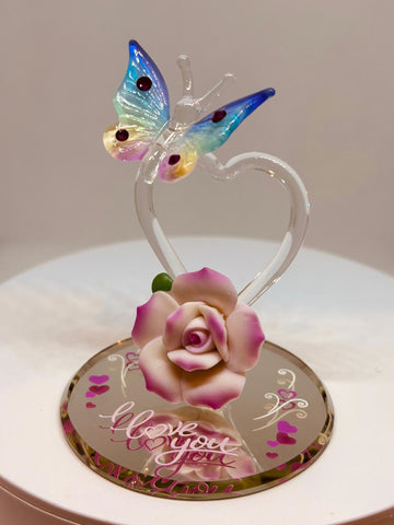 Butterfly on Heart Glass Figurine with Crystals I Love You Romantic Gift