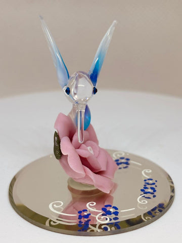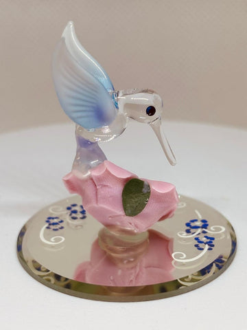 Hummingbird with Pink Flower Figurine | Handcrafted Glass Bird Home Decor