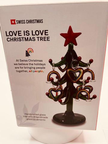Celebrate love and pride with this handcrafted Love Is Love Rainbow Christmas Tree. It features eight mini rainbow and heart ornaments and makes a bright addition to holiday decorating and Christmas displays.