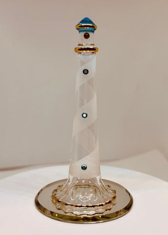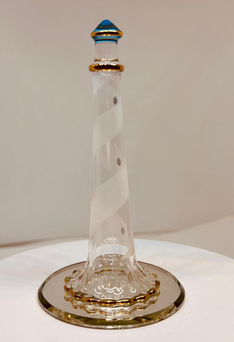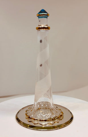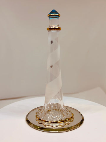 Glass Lighthouse Figurine with Mirror Base | Coastal Decor | Nautical Gift