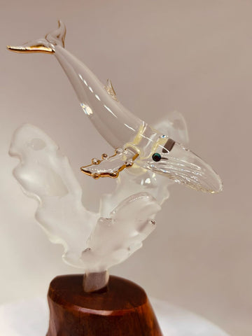 Whale Figurine on Walnut Wood Base | Handcrafted Glass Ocean Decor