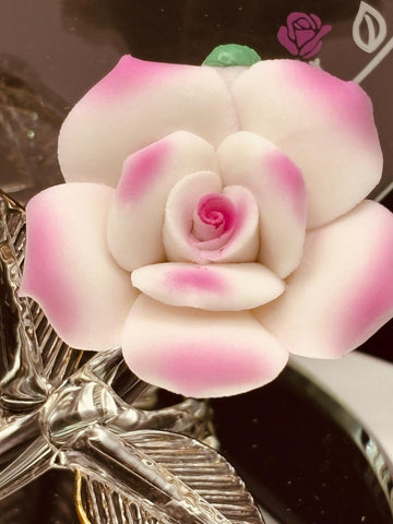 Handcrafted pink porcelain open rose figurine