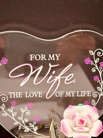“My Wife” Pink Rose Figurine | Glass Romantic Love Gift Décor
