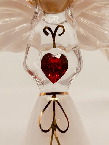 Angel with Red Crystal Heart Ornament | Inspirational Glass Gift Décor