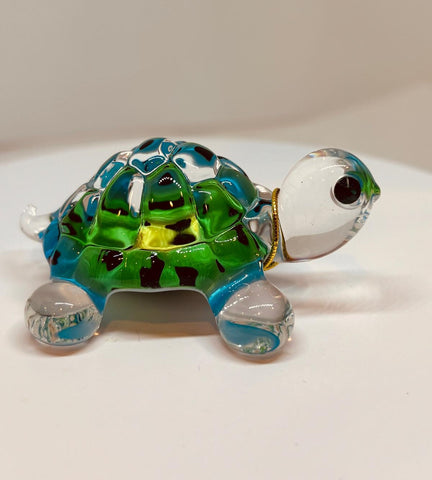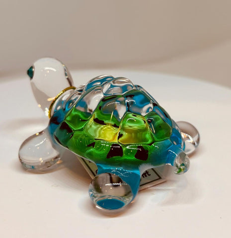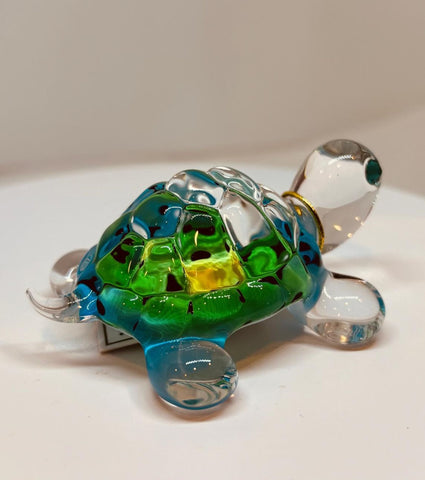 • Handcrafted glass figurine of a Caribbean Blue Turtle with sparkling blue crystal eyes