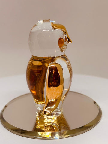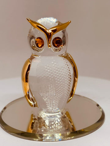 Clear and Gold Owl Figurine | Handcrafted Glass Owl with Gold Accents