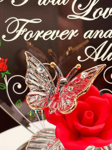 “I Love You Always” Butterfly & Red Rose Figurine | Glass Romantic Gift