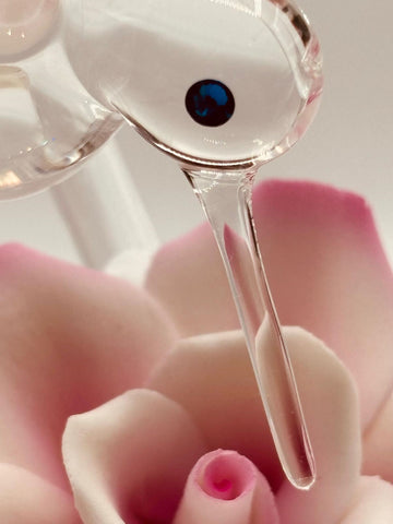 Handcrafted glass hummingbird and pink rose figurine