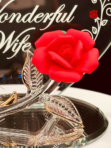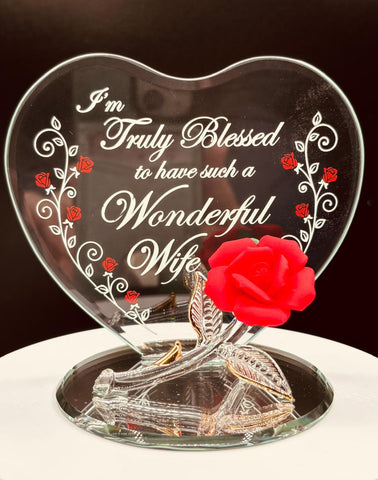 “Truly Blessed” Red Rose Figurine | Wife Appreciation Glass Décor