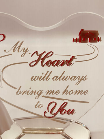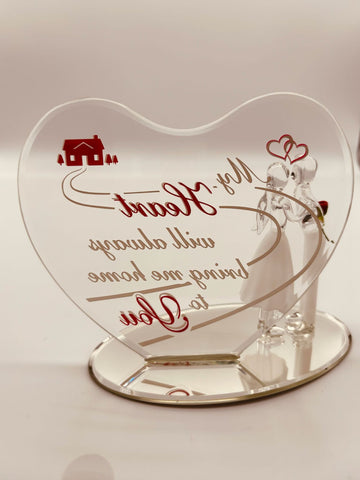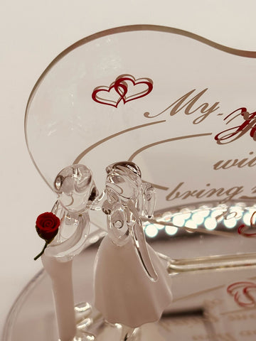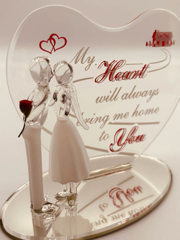 Coming Home Couple Figurine | Handcrafted Glass Romance Decor with Rose and Heart Plate