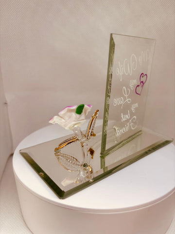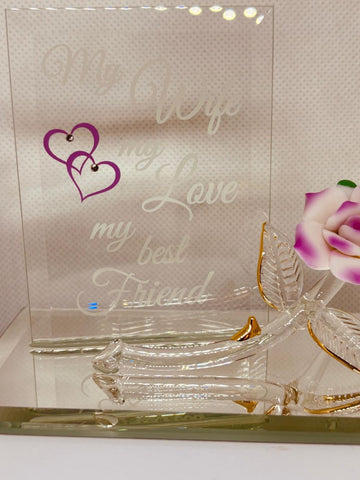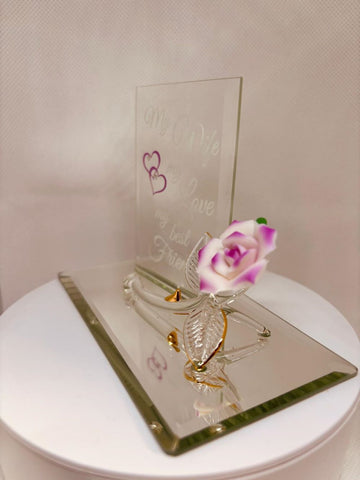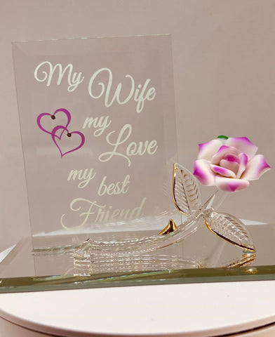 My Wife My Best Friend Pink Rose Figurine | Handcrafted Glass Gift
