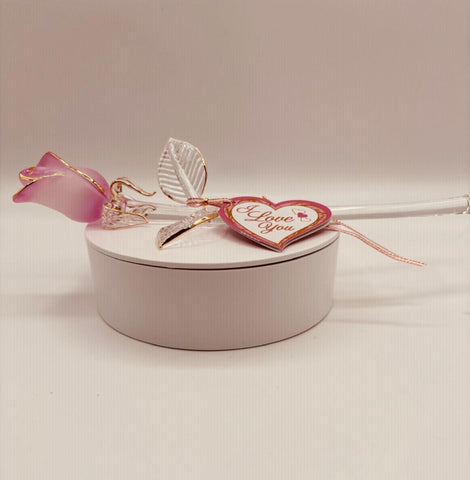 Pink Pearl Glass Rose Figurine | Romantic I Love You Gift with Heart Tag