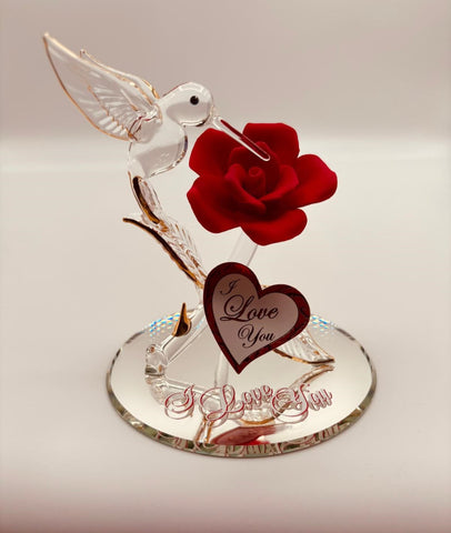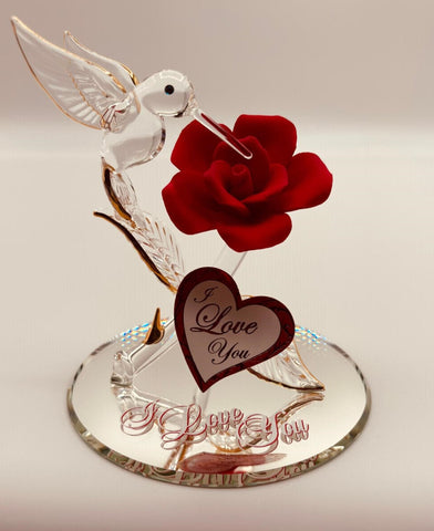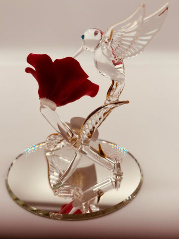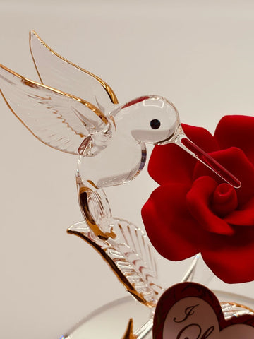 Red Rose and Hummingbird Figurine | Handcrafted Glass Romantic Floral Collectible Decor