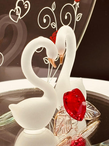 Glass Swan Couple Figurine | Handcrafted Romantic Love Gift for Couples