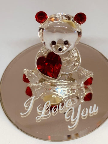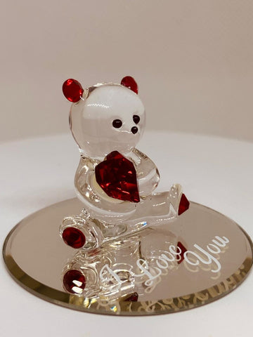 "I Love You" Bear Figurine | Handcrafted Glass Bear with Crystal Heart