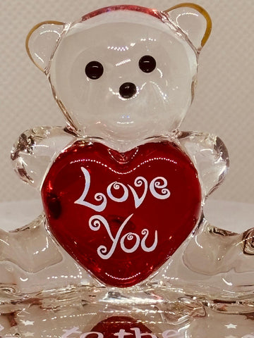 Handcrafted glass bear holding a red heart