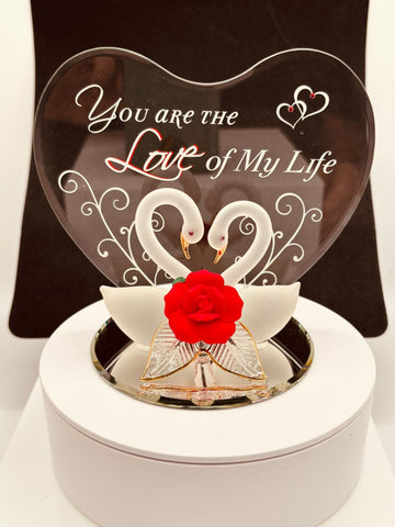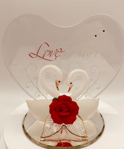 Celebrate romance and meaningful moments with this handcrafted Love of My Life Swan Pair Display. Designed with heart accents and an engraved message, it adds a touching element to any home.