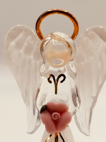Angel with Pink Rose Figurine | Glass Inspirational Comfort Décor