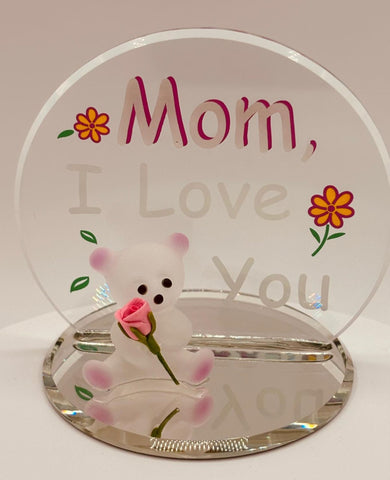 Mom I Love You Bear Figurine | Handcrafted Glass Mom Gift