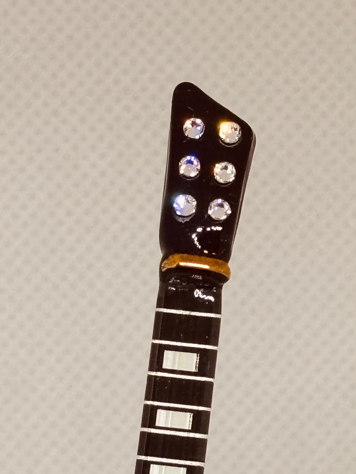 Its size makes it suitable for shelves, desks, or music-themed displays. This piece works well as a gift for guitar players, music lovers, or collectors of instrument figurines.