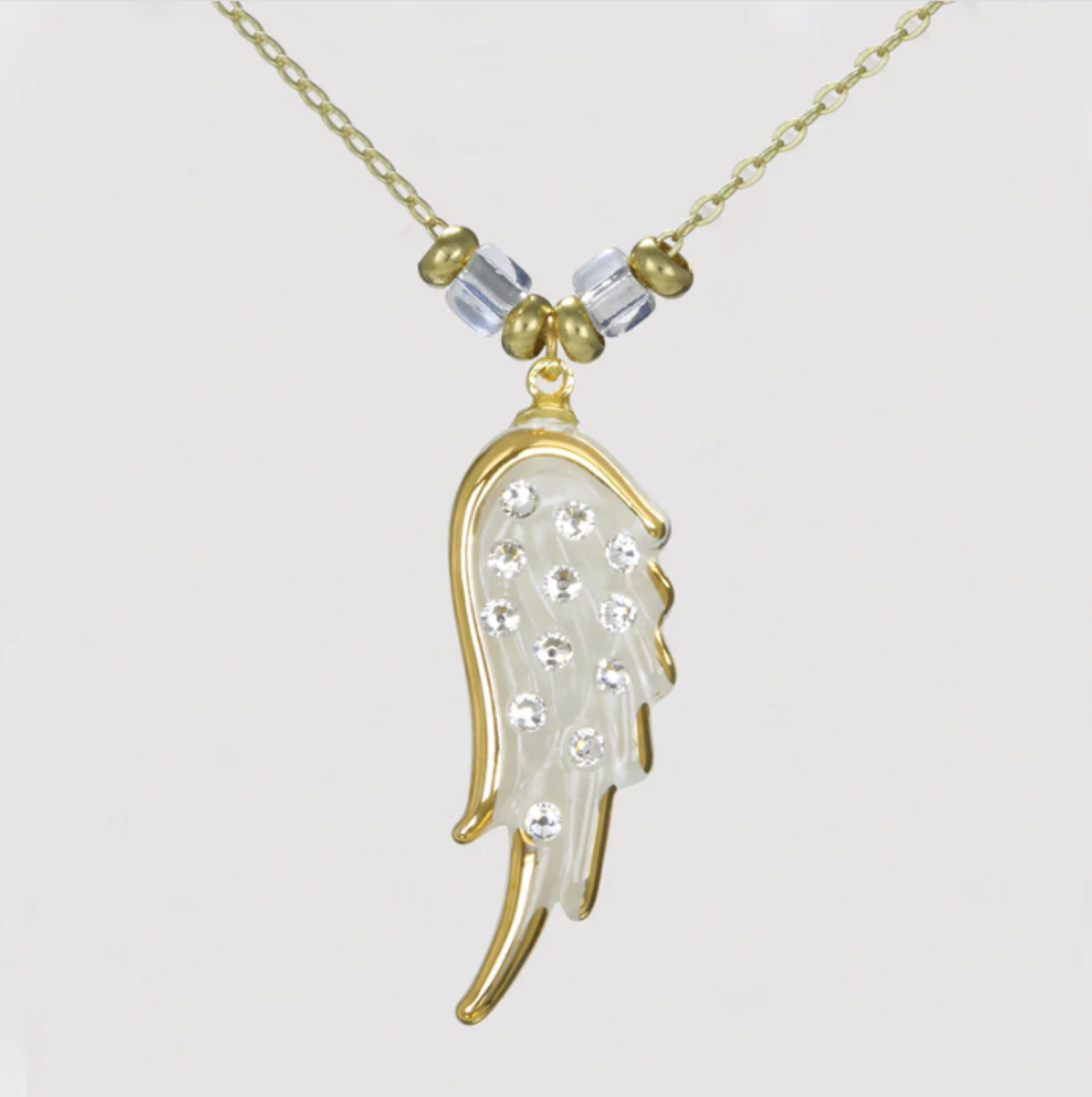 Angel’s Wing Necklace | Handcrafted Crystal Wing Pendant on 18" Gold Plated Chain
