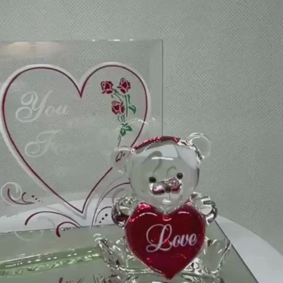 You Are Forever My Love Glass Teddy Bear Figurine | Handcrafted Gift of Love