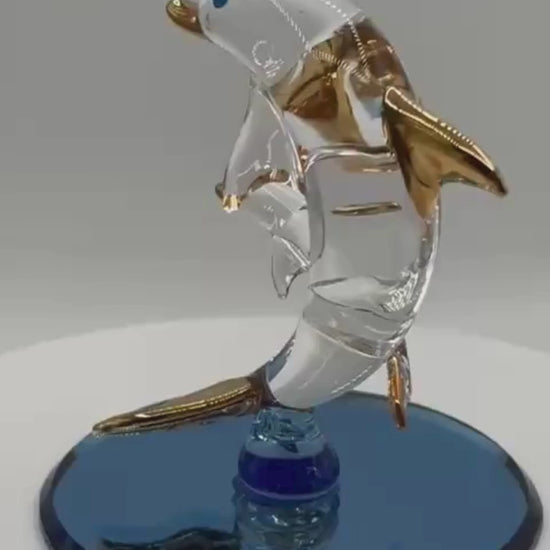 Handcrafted glass dolphin and baby figurine