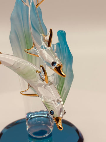 Dolphin with Baby Glass Figurine | Coastal Ocean Decor for Sea Life Lovers