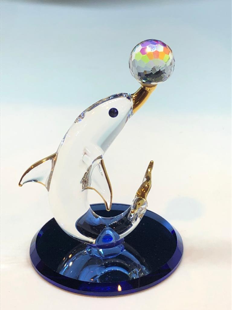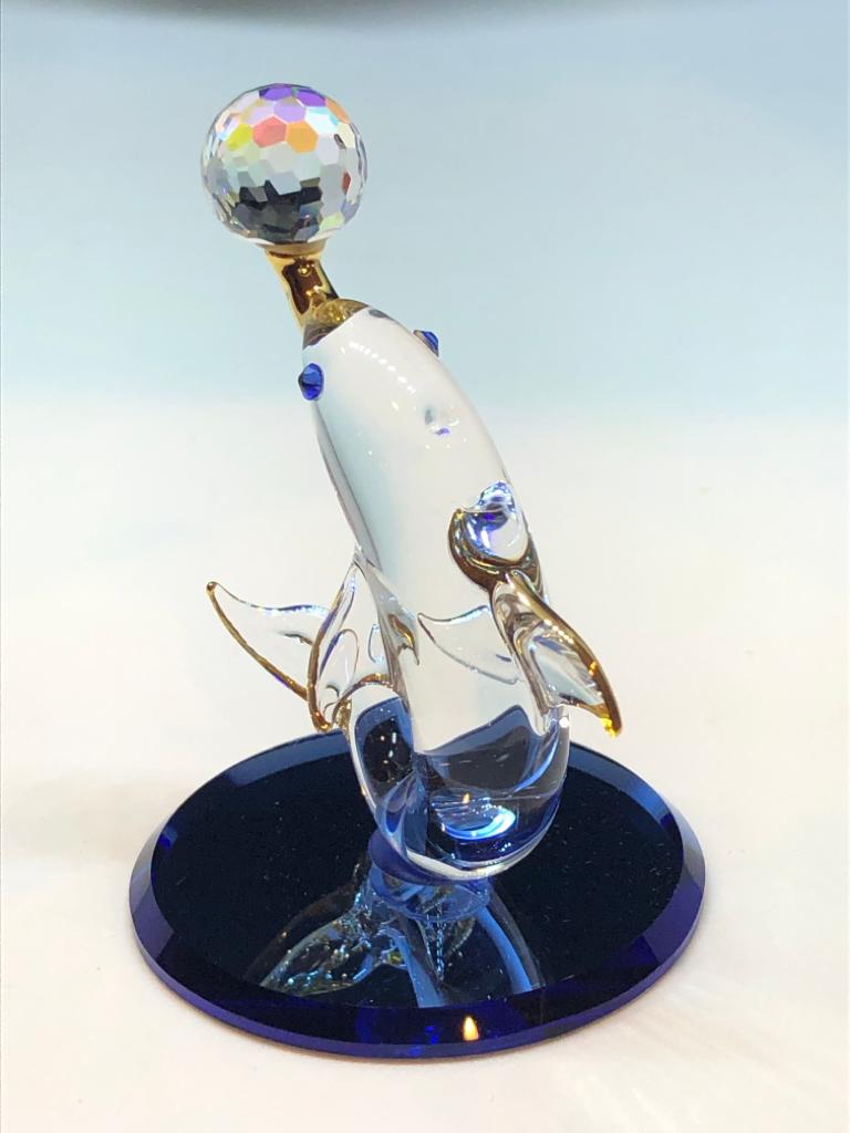 Glass Dolphin Figurine, Dolphin & Crystal Ball, Holiday Gifts for Him/Her, Handmade Figurine, Gifts for Mom, Art Decor
