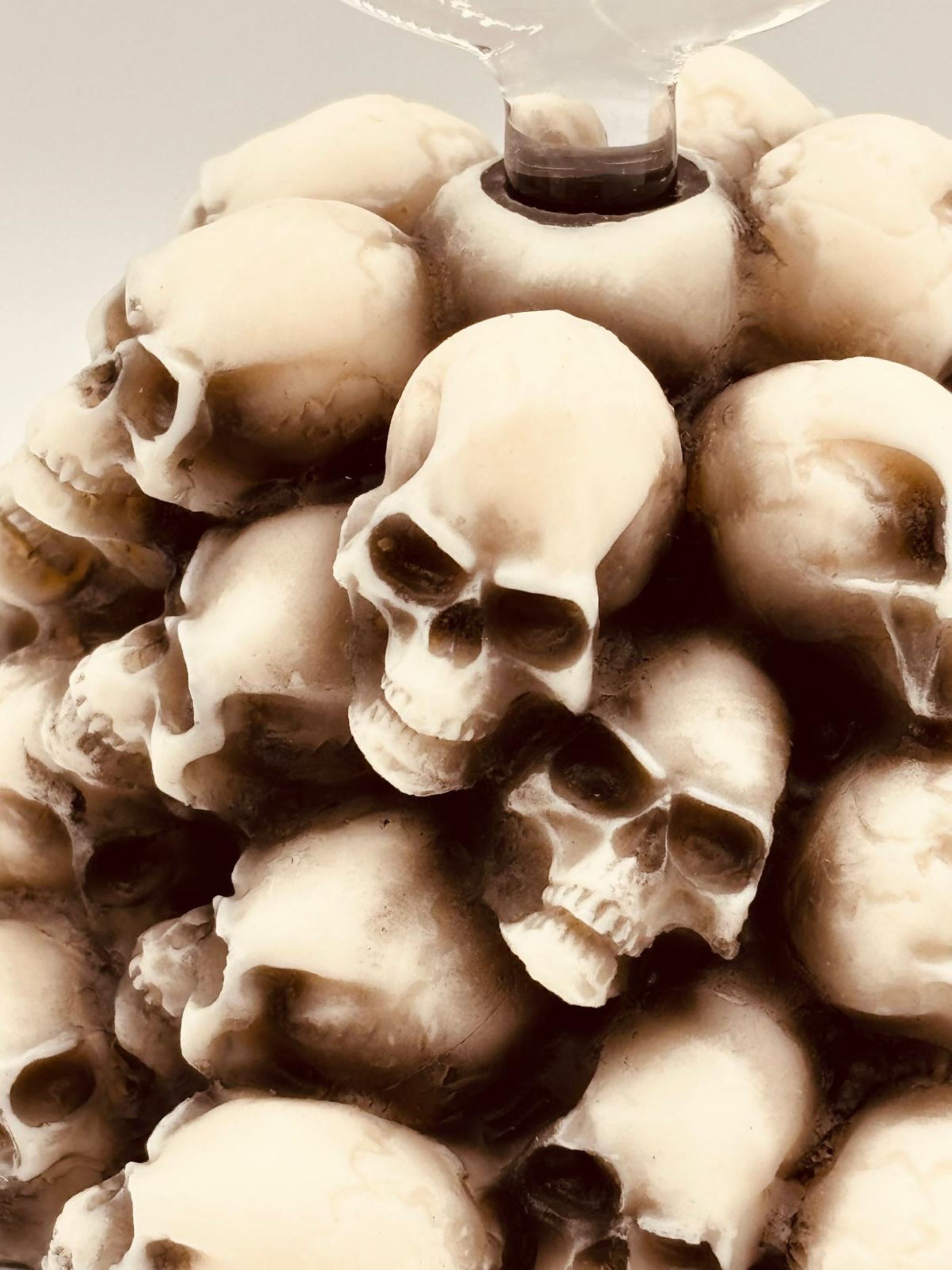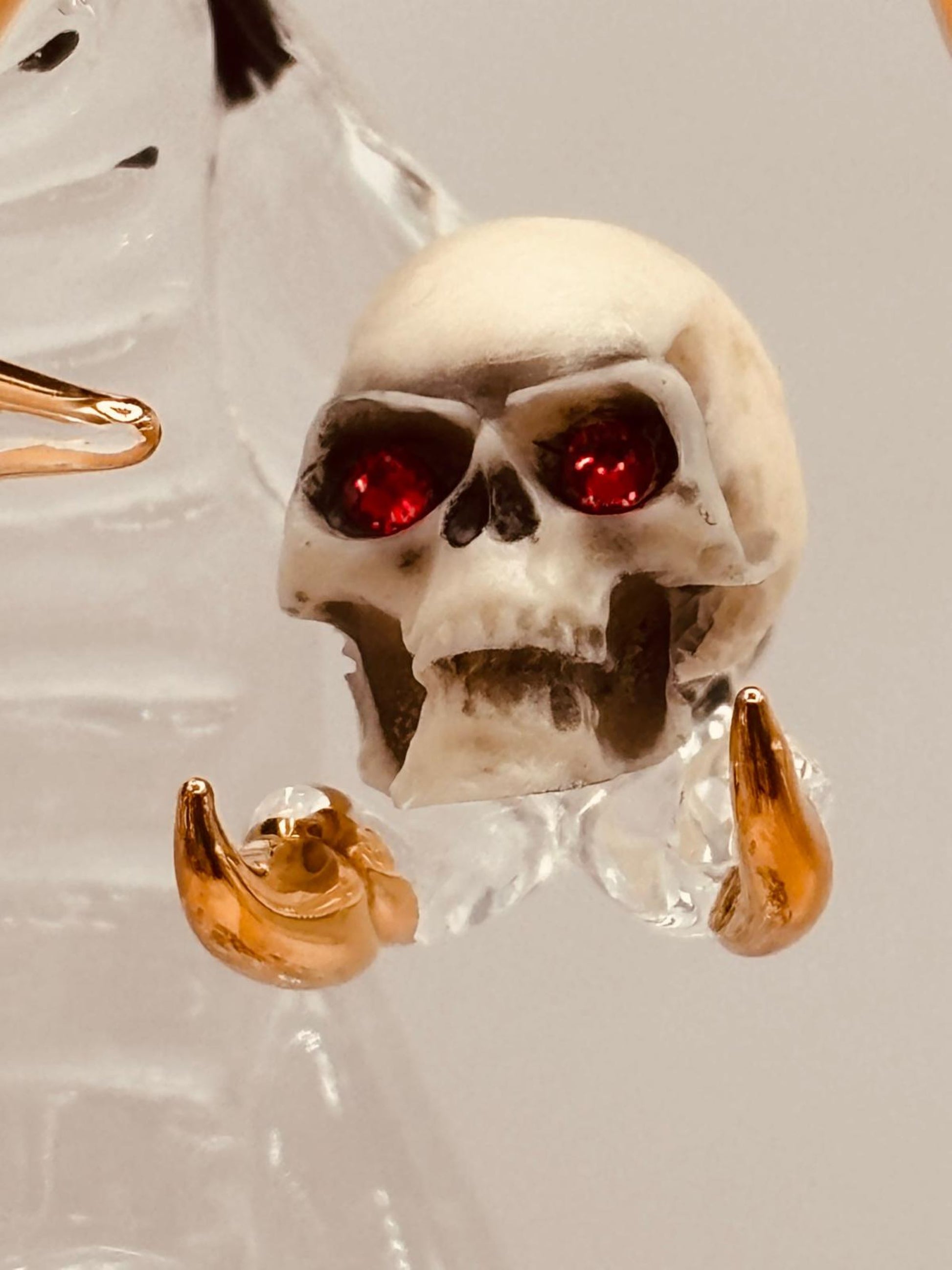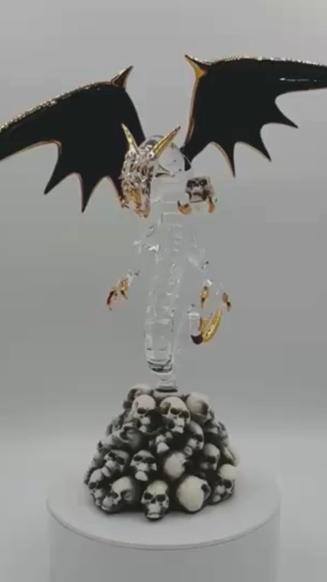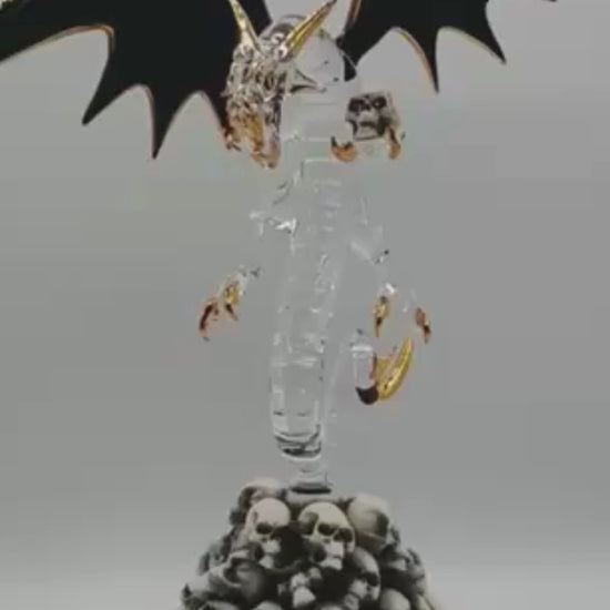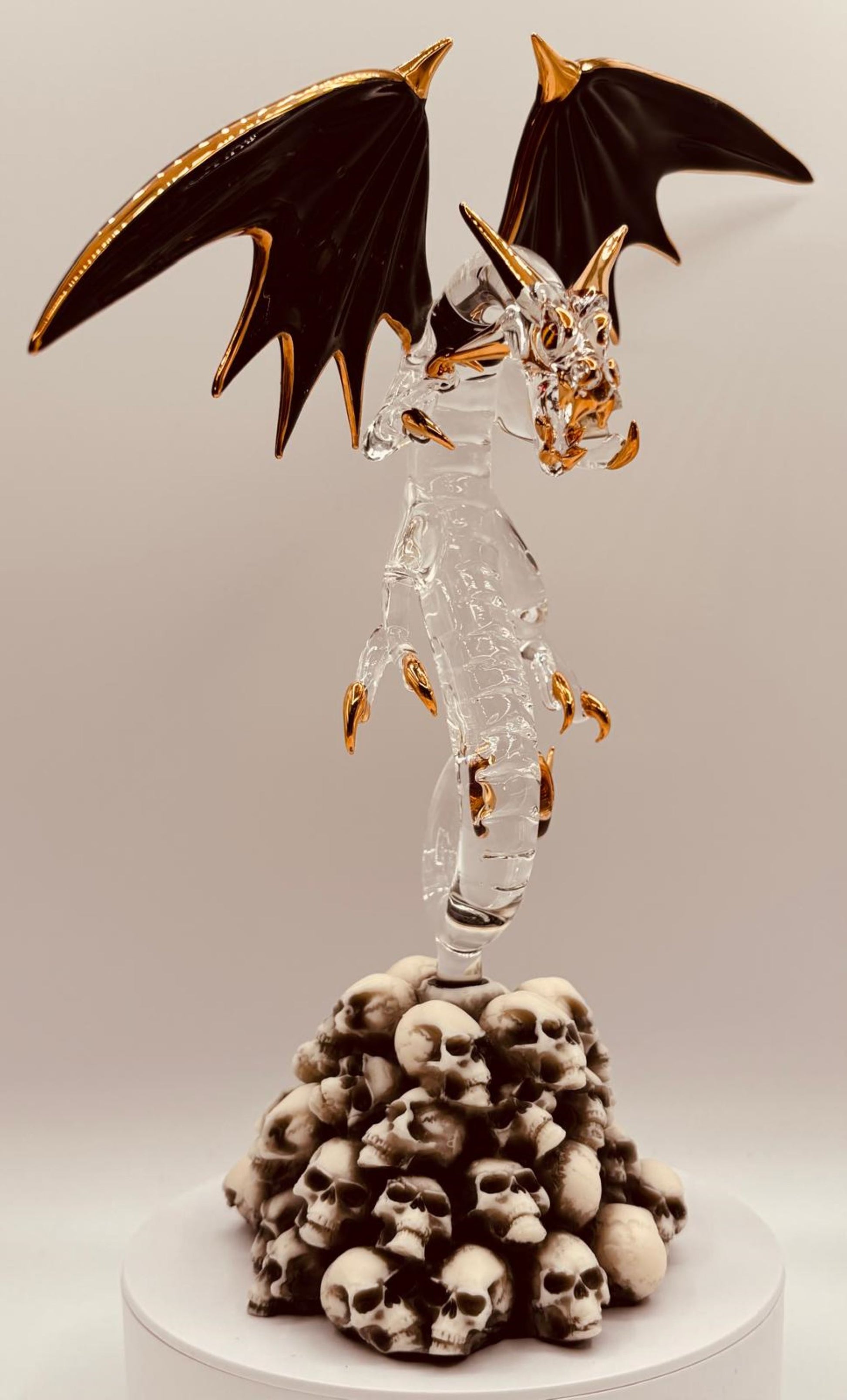 Enter a fantasy-inspired display with this handcrafted Skull Crusher Dragon figurine. The dragon is posed holding a skull while standing on a pile of skulls, creating a bold centerpiece for themed rooms, gaming décor, office shelves, or collectible displays.