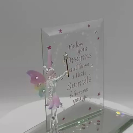 • Handcrafted glass fairy on a mirrored base with back plate