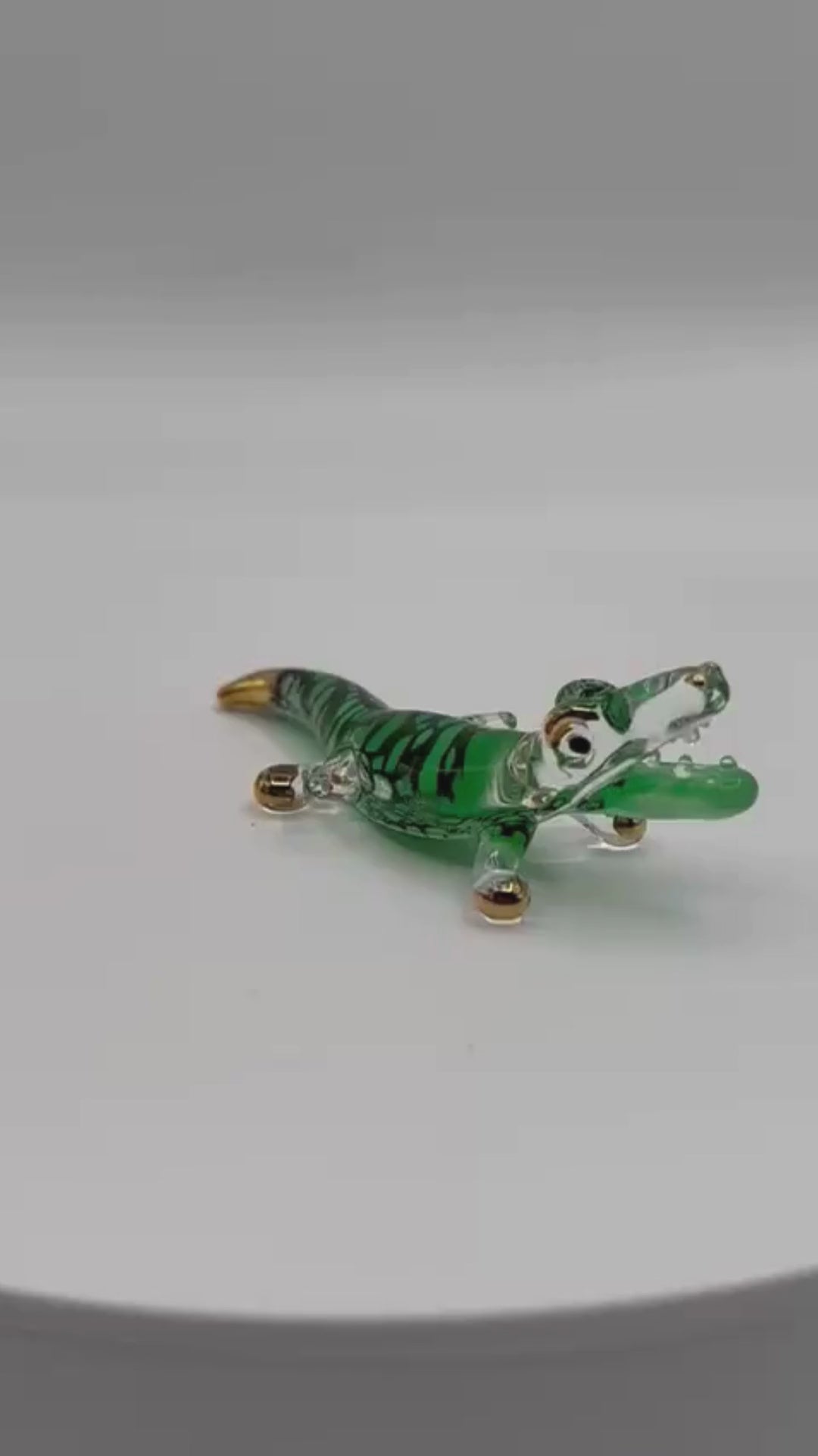 Catch your own little gator with the Lil Snapper Gator Glass Figurine. This handcrafted alligator features a big toothy grin and detailed air-brushed coloring, accented with real 22Kt gold.