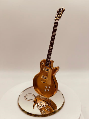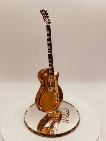 • Handcrafted figurine of a gold top guitar on a beveled glass base