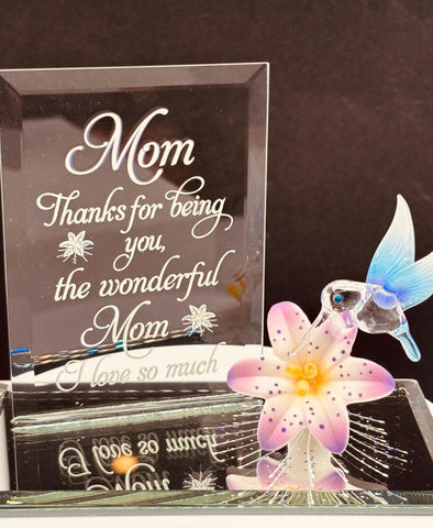 Hummingbird Wonderful Mom Figurine | Handcrafted Glass Mom Gift