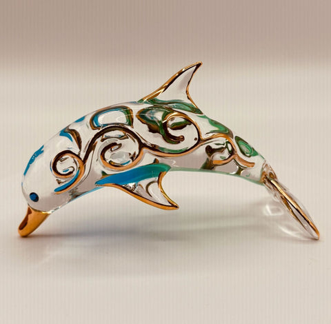 Paradise Dolphin Glass Figurine Handcrafted Ocean Theme Decor
