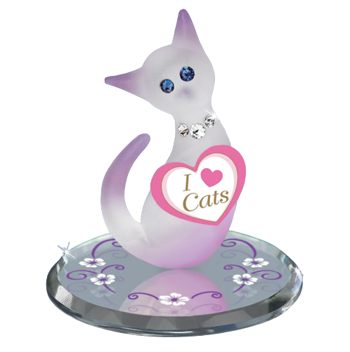 Pink Cat “I Love Cats” Figurine Handcrafted Glass Gift for Cat Lovers